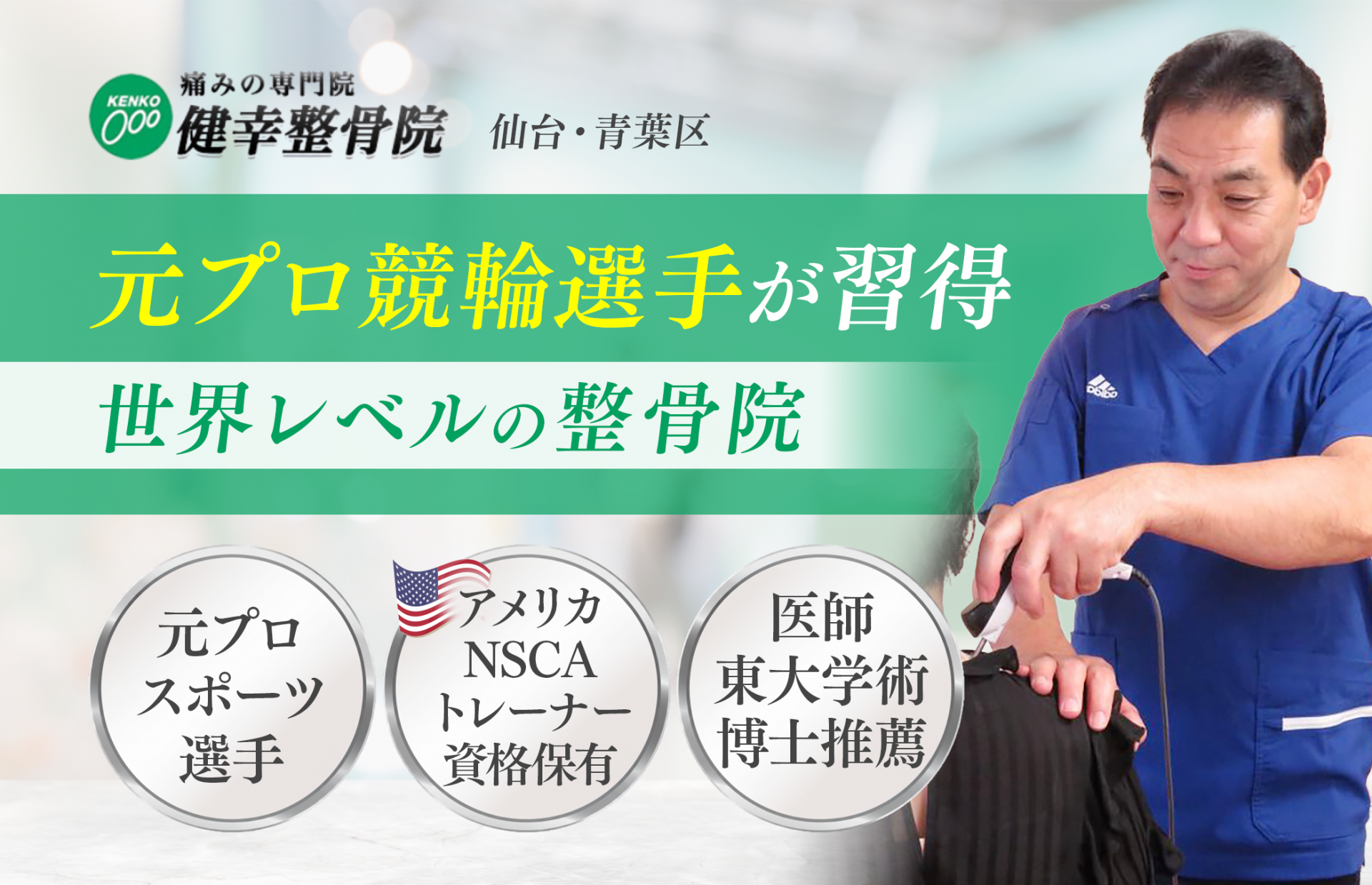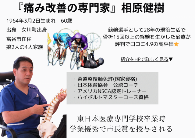 元プロ競輪選手がアメリカNSCAで習得した世界レベルの施術で「病院で異常なしと言われた痛み」の原因を特定する整体院